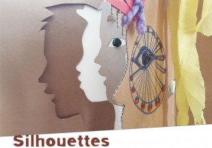 L’artiste plasticienne Claire Dupoizat propose de créer une sculpture à plusieurs têtes à partir des profils découpés dans des couleurs vives de participants de l’atelier.