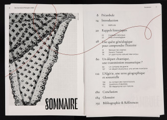 Ouvrage réalisé par Hannah Puzenat, petite-fille de Simone et Gérard Partouche. Mémoire rédigé pour son Diplôme national supérieur d'expression plastique (DNSEP) Communication option didactique visuelle, à la Haute école des arts du Rhin en 2020. Collection du Musée national de l'histoire de l'immigration, Inv. 2024.10.11
