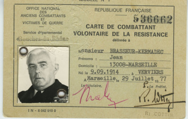 Carte de combattant volontaire de la résistance de Jean Brasseur-Kermadec