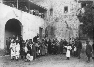 Auteur inconnu (photographe de l'armée), Camp de concentration des Nomades de Crest (Drôme), Nomades au concert, janvier 1916, tirage, 13X18 cm © Médiathèque de l'architecture et du patrimoine, RMN-Grand Palais