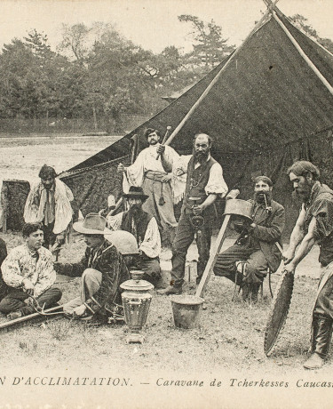 Carte portale de l’exposition des Tcherkesses caucasiens au Jardin d’acclimatation à Paris, 1913 © Collection privée