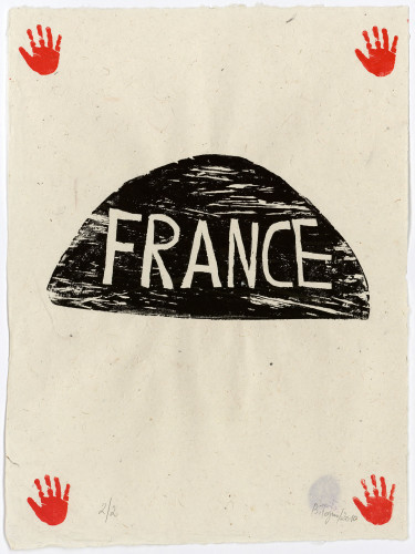Barthélémy Togo, Gravure sur bois ; empreinte correspondant au tampon en bois portant le même titre “France”, 2010, Musée national de l'histoire de l'immigration, inv. 2010.23.8
