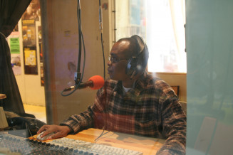 Houssen Mze Hamadi, portrait, dans le studio de Radio Galère, Marseille 2007 © Collection particulière Houssen Mze Hamadi, Atelier du Bruit.