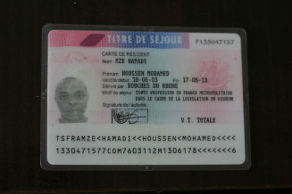 Houssen Mze Hamadi, archive. Sa carte de séjour de dix ans. Marseille 2007 © Collection particulière Houssen Mze Hamadi, Atelier du Bruit.
