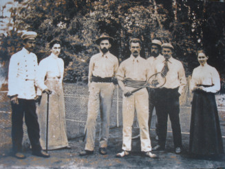 Archive. Après une partie de tennis, en Russie, avant la Grande Guerre (non datée). A l’extrême-gauche, un des fils de Léon Tolstoï, cousin du père de Michel Lopoukhine, Nikolaï. Celui-ci est le sixième à partir de la gauche © Collection particulière Michel Lopoukhine, Atelier du Bruit.