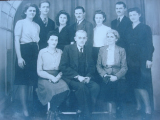 Archive. Photo de la famille de Michel, prise chez le photographe à son retour de captivité en France, en 1945. Il est le 2e en haut à gauche. Au centre, les parents © Collection particulière Michel Lopoukhine, Atelier du Bruit.