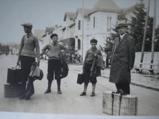Archive. Les trois fils Lopoukhine, dont Michel, le plus petit, débarquant à Sainte-Foy-la-Grande pour y apprendre le français en 1930, peu après l’arrivée de la famille en France © Collection particulière Michel Lopoukhine, Atelier du Bruit.