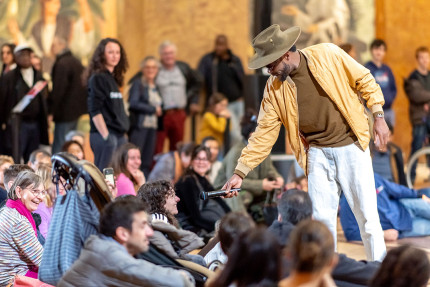 Table ronde « Raconter l’histoire » animée par Marianne Amar, historienne et conseillère Histoire des migrations auprès de la directrice générale du Palais de la Porte Dorée, avec : Sébastien Malaprade, Maître de conférences en Histoire moderne à l'Université Paris-Est Créteil (CRHEC), co-responsable du Master d'histoire publique de Créteil, co-directeur du festival d'histoire populaire ; Marie Chartron, documentariste radio, productrice pour France Culture du documentaire « Missak Manouchian, à l’apatride la patrie reconnaissante » et de la série « M.O.I, la main d’œuvre immigrée en lutte » et Clément Fabre, historien, responsable éditorial à l’encyclopédie multimédia « Écrire une nouvelle histoire de l’Europe ».