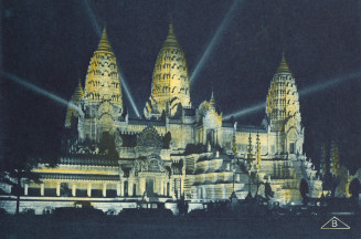 Exposition coloniale de 1931, vue du temple d'Angkor Vat de nuit. Carte postale. © DR / collection particulière